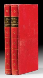 [STENDHAL (Henry Beyle, dit)]. De l'Amour. Paris, P. Mongie l'aîné, 1822. 2 volumes in-12, bradel cartonnage papier rouge glacé, dos lisse orné de doubles filets dorés et d'un petit fer répété, pièces de titre et de tomaison noires, tête dorée, non rogné, chemises demi-veau noir et étuis modernes (Reliure anglaise de l'époque). Édition originale. De l'Amour est le livre d'un amoureux, le livre d'un homme qui, passant un jour en revue les femmes qu'il avait aimées, avouait naïvement que la plupart de ces êtres charmants ne l'avaient point honoré de leurs bontés, mais qu'elles avaient à la lettre occupé sa vie. [...] Beyle considéra toute sa vie De l'Amour comme son œuvre principale, parce qu'il y avait exposé ses idées les plus chères, ses croyances les plus intimes, toute cette science du bonheur à laquelle il attachait tant d'importance, surtout parce qu'il y avait enfermé ses plus douloureux secrets d'amour (Martineau, L'Œuvre de Stendhal, 1945). Exemplaire très désirable ayant appartenu à William Beckford (1759-1844), richissime excentrique, critique d'art et écrivain, auteur de Vathek, roman gothique écrit en français qui lui a assuré une grande renommée. L'exemplaire comporte quelques notes autographes au crayon de Beckford. Il est conservé dans un sobre et charmant cartonnage de l'époque. Des bibliothèques William Beckford (1883, n°2221 ; note manuscrite au contreplat supérieur : Beckford Sale 1883 Lot 2221 with Beckford's notes), Earl of Rosebery (1933, n°344 ; avec le timbre sec The Durdans Epsom Rosebery sur le titre) et Robert von Hirsch (1978, n°241). Petite fente restaurée dans le fond du titre au tome I. Petite fente aux mors.