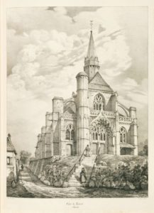 TAYLOR (Isidore), Charles NODIER et Alphonse de CAILLEUX. Voyages pittoresques et romantiques dans l'ancienne France. Picardie. Paris, De l'Imprimerie de Firmin Didot frères, 1835-1845. 3 volumes in-folio, demi-maroquin rouge avec coins, dos orné, pièces de titre et de tomaison vertes, tranches dorées (Reliure de la seconde moitié du XIXe siècle). Édition originale. Superbe illustration lithographiée comprenant un frontispice et 475 (sur 476) planches, la plupart sur chine appliqué, plus de nombreux encadrements variés (historiés, à décor d'entrelacs, avec paysages, etc.) lithographiés dans la marge d'environ 400 feuillets de texte. (Vicaire, t. VII, col. 765-766.) Très jolie reliure décorée. Rousseurs. Éraflures sur les plats, dos passé.