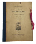 On joint : ROPS (Félicien). Dix eaux-fortes pour illustrer Les Diaboliques... Paris, Lemerre, s.d. In-8, en feuilles, portefeuille imprimé en demi-percaline de l'éditeur. Suite complète de neuf eaux-fortes originales de Félicien Rops et d'un portrait de Barbey d'Aurevilly par Paul Rajon. Belles épreuves avec la lettre sur papier vergé ; rares piqûres. De la bibliothèque Auguste Martin, avec ex-libris.
