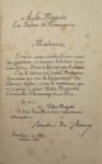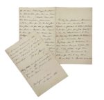 On joint une longue et importante lettre autographe signée de l'auteur à Villiers de l'Isle-Adam, datée du 12 août 1886 à Boulogne-sur-Mer (6 pp. in-12), dans laquelle il évoque L'Ève future, que Villiers lui avait envoyé et pour lequel il exprime une vive admiration, et la « consanguinité littéraire » qui apparente son œuvre à celle de Villiers : « tous deux... nous avons tenté d'entrevoir en rêve les merveilles que ce siècle prépare à l'avenir... »