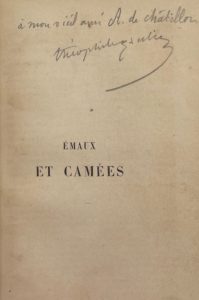 Peintre, sculpteur mais aussi poète, Auguste de Châtillon (1808-1881) était un ami intime de Gautier et de Nerval depuis l’époque de la bohème du Doyenné, encore évoquée en 1853 dans les Petits châteaux de Bohème de Nerval. Il est l’auteur d’un célèbre portrait de Gautier, exécuté en 1839 (conservé au Musée de la Vie romantique).