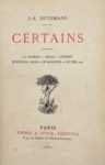 On joint, du même : Certains. Paris, Tresse & Stock, 1889. In-12, bradel demi-maroquin havane avec coins, non rogné, couverture et dos (Stroobants). Édition originale. Exemplaire enrichi d'une épreuve sur chine du portrait de Huysmans par L.-F. Bescherer sur laquelle figure un envoi autographe signé de l'écrivain à Gustave Coquiot. Petites rousseurs sur le portrait.