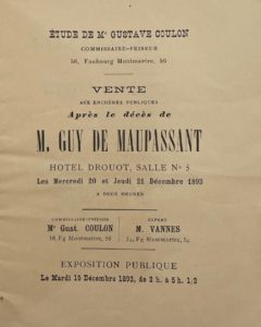 [MAUPASSANT (Guy de)] — Vente aux enchères publiques après le décès de M. Guy de Maupassant.