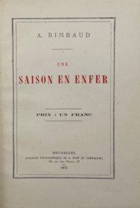 Bruxelles, Alliance typographique (M.-J. Poot & Cie), 1873. In-12, broché. Édition originale très recherchée du seul ouvrage publié par Rimbaud de son vivant.