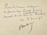 On joint un billet autographe signé de Verlaine : « Reçu de Vanier éditeur la somme de cinq francs. Sonnet sur la mort de Rimbaud. Paris 30 janvier 93 ». Ce « sonnet sur la mort de Rimbaud » n'est autre, vraisemblablement, que le célèbre poème À Arthur Rimbaud, composé le même jour, alors que Léon Vanier venait de lui communiquer le dessin d’Isabelle Rimbaud montrant son frère en costume oriental. Il est paru dans la revue La Plume en février 1893, puis dans la seconde édition de Dédicaces en 1894.