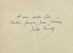 On joint un petit billet autographe signé et deux portraits photographiques de Jules Verne par Nadar et Truchelut.
