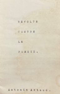 ARTAUD (Antonin) — Révolte contre la poésie. S.l.n.d. [Rodez, 1943].
