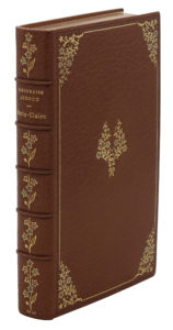 Paris, Eugène Fasquelle, 1910. In-12, maroquin havane, filet et fleurons dorés aux angles et au centre rehaussés de points colorés, dos orné de même, tranches dorées sur témoins, couverture et dos, chemise et étui gainés du même maroquin (J. Faki – D. Morcrette del. – L. & C. Berthaux dor.).Édition originale, préfacée par Octave Mirbeau.