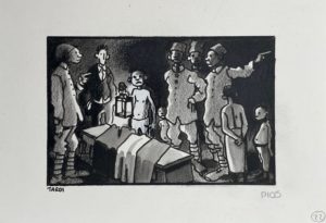 Un des 120 exemplaires de tête, numérotés et accompagnés d’un dessin original à l'encre de Chine signé de l'artiste, reprenant la composition de la p. 105 du livre et encarté dans une chemise.