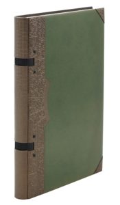 Paris, Gallimard, 1955. In-8, plats rigides en médium peint vert olive, bordure de veau bronze irisé gaufré à motif « La belle reliure parisienne » sur les mors et les coins, dos de veau bronze gaufré « petits carrés », coutures apparentes sur lanières de box noir gaufré, doublures de nubuck beige, non rogné, couverture et dos, chemise et étui (J. de Gonet, 2008).Édition originale de la traduction française de R. N. Raimbault, accompagnée du texte original anglais de ce recueil de poèmes publié en 1933.