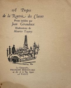 GIRAUDOUX (Jean) — À propos de la rentrée des classes.