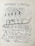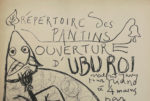 On joint : JARRY (Alfred) et Claude TERRASSE. Répertoire des Pantins. Ouverture d'Ubu roi. – Marche des Polonais, extraite d'Ubu roi. Paris, Mercure de France, 1898. 2 fascicules in-4 de 12 et 8 pp. Édition originale de ces deux partitions pour piano illustrées chacune d'une grande lithographie originale d'Alfred Jarry en couverture. Elles forment les deux derniers fascicules du Répertoire des Pantins. On joint également la partition seule, non illustrée, de la Chanson du décervelage (Tudé) chantée par Jacotot, au 5e acte d'Ubu roi, imprimée sur un feuillet in-4 plié en deux (Impr. E. Dupré vers 1898).