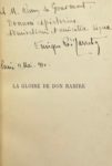 Exemplaire de Remy de Gourmont, comportant cet envoi autographe signé d'Enrique Larreta : À M. Remy de Gourmont. Donum expiatorius. Admirationis et amicitiæ signa [sic], daté Paris, 11 mai 1910.