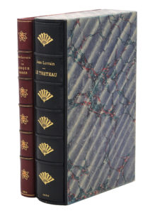 On joint, du même : La Jonque dorée. Conte japonais. Paris, E. Sansot, 1911. In-12, demi-maroquin grenat avec coins, dos orné d'un fleuron doré et mosaïqué répété, tête dorée, non rogné, couverture et dos (J. Faki). Édition originale posthume publiée par Georges Normandy. Un des 15 exemplaires de tête sur japon impérial.