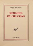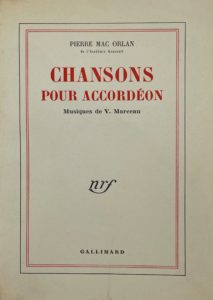 MAC ORLAN (Pierre) — Chansons pour accordéon. Musiques de V. Marceau. Paris, Gallimard, 1953. – Mémoires en chansons.