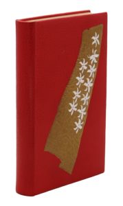 Paris, Bernard Grasset, 1926. In-12, maroquin rouge orné sur le premier plat d'une pièce irrégulière de maroquin beige mosaïquée chargée de onze fleurettes mosaïquées en maroquin blanc, dos lisse muet, doublure et gardes de porc-velours vert, doubles gardes de soie imprimée, tranches dorées sur témoins, couverture et dos, chemise et étui gainés de maroquin rouge (D. Morcrette – C. de Séguier).Édition originale.