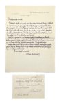 On joint une très belle lettre autographe signée d'Octave Mirbeau à Julia Bartet sur sa prestation dans le rôle de Thérèse Courtin et une carte de visite de la comédienne comportant quelques lignes de sa main sur l'origine de son nom de scène.