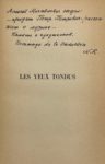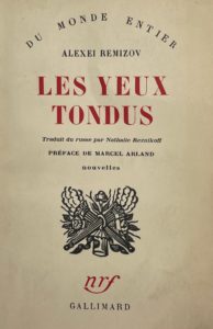 On joint une belle lettre autographe signée d'Alexeï Remizov à Marcel Arland au sujet de l'ouvrage, datée Paris, 18 septembre s.d. (1 p. in-4 ornée d'un croquis autographe) : « Je reçois un mot de R. de Solier qui est très impatient de revoir les épreuves des “Yeux Tondus”. Voudriez-vous avoir l'obligeance de les lui faire adresser le plus rapidement possible... »