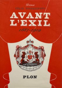 Paris, Plon, 1952. In-8, broché, non coupé. Édition originale des mémoires du prince Youssoupoff, avec 43 reproductions hors texte. Un second tome, En exil, est paru deux ans plus tard.