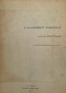 CLAUDEL (Paul) — L’Agamemnon d’Eschyle traduit par Paul Claudel.