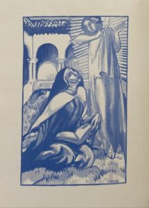 In-8 carré, en feuilles, chemise cartonnée blanc et or de l’éditeur. Édition originale, illustrée par Maurice Denis d’un frontispice, un en-tête, une lettrine et un cul-de-lampe gravés sur bois par Jacques Beltrand. Un des 350 exemplaires sur vergé d’Arches. Manque un ruban d’attache. Benoist-Méchin, n°25.