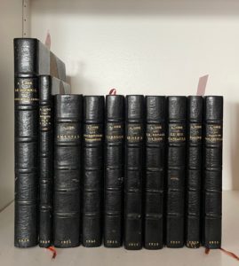 Les reliures des dix ouvrages présentent des épidermures au dos et aux mors.