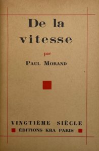 De la vitesse. Paris, Kra, 1929. In-12, broché, sous couverture rempliée. Édition originale. Un des 1800 exemplaires sur vélin, signé de l’auteur. Dos passé.