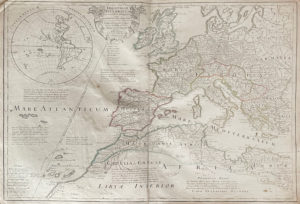 Composition : 1-2. Theatrum historicum... Pars orientalis [– occidentalis], 1705. Carte en deux feuilles. – 3. Tabula Italiæ antiquæ, 1715. – 4. Regionum Italiæ mediarum tabula geographica, 1711. – 5. Siciliæ antiquæ quæ et Sicania et Trinacria dicta tabula geographica, 1714. – 6-7. Græciæ antiquæ tabula nova. Græciæ pars meridionalis [–septentrionalis], 1707-1708. Carte en deux feuilles. – 8. Mappemonde à l'usage du Roy, 1720. – 9. Carte d'Europe, 1724. – 10. Carte d'Asie, 1723. – 11. Carte d'Afrique, 1722. – 12. Carte d'Amérique, 1722 – 13. Carte de France, 1721. – 14. Carte de la prevosté et vicomté de Paris, 1711. – 15. L'Espagne, 1701. – 16. Les Isles Britanniques, 1702. – 17. L'Italie, 1700. – 18. L'Allemagne, 1701 – 19. Carte des Pays Bas catholiques, 1702. – 20. Carte des Provinces Unies des Pays Bas, 1702. – 21. Le Royaume de Pologne. Paris, Delamarche, s.d. – 22. La Prusse divisée en Prusse royale et Prusse ducale. S.l.n.d. – 23. Le Royaume de Danemarck. S.l.n.d. – 24. Les Royaumes de Suede et de Norwege. S.l.n.d.