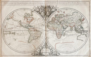 Composition (la numérotation se réfère à la collation donnée par Mireille Pastoureau) : [1] Mappe-monde géo-hydrographique ou description générale du globe terrestre et aquatique en deux plans-hémisphères. 1674. Trou avec petit manque dans le cartouche ornemental. – [3] L’Asie distinguée en ses principales parties. 1674. – [8] La Scandinavie et les environs où sont les royaumes de Suède, de Danemarck et de Norvège. 1675. – [15] Les Monts Pyrénées, où sont remarqués les passages de France en Espagne. 1675. – [14] L’Alsace divisée en ses principales parties. 1674. – [17] L’Empire d’Allemagne. 1674. – [18] Les Pays-Bas divisés en dix sept provinces… 1672. Petits grattages sur le cartouche de titre. – [19] Les Provinces des Pays Bas catholiques. 1672. Taches d’encre sur le cartouche de titre. – [20] Provinces Unies des Pays-Bas. 1673. Fines déchirures dans le pli médian. – [21] Partie septentrionale du Comté de Hollande. 1674. Assemblé à : Partie méridionale du Comté de Hollande. 1674. Armoiries masquées dans le cartouche inférieur. – [22] Le Cours de la Rivière du Rhein depuis sa source jusques à son embouchure. 1672. – [23] Le Cercle de Souabe. 1675. – [24] Le Cercle eslectoral du Rhein (sic). 1675. – [26] Le Cercle de Westphalie. 1675. – [27] Le Cercle de Franconie. 1674. – [28] Le Cercle de Bavière. 1675. – [32] Le Cercle de la Haute Saxe. 1676. – [33] Le Marquisat et Eslectorat de Brandebourg. 1676. – [34] Le Duché de Pomeranie. 1676. – [36] Les Estats de la Couronne de Pologne. 1675. – [38] La Catalogne sous le nom de laquelle sont compris la Principauté de Catalogne et les Comtés de Roussillon et de Cerdagne. 1674. – [42] Le Royaume de Hongrie et les Estats qui ont esté sujets et dependans de sa Couronne. 1673. – [43] Les Estats de l’Empire du Grand Seigneur des Turcs en Europe, en Asie et en Afrique. 1675. En cartons, carte des royaumes d’Alger et de Fez.