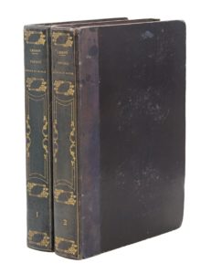 Paris, Pourrat frères, 1838-1839. 2 volumes grand in-8, demi-veau bleu, dos lisse orné, tranches lisses (Reliure de l'époque).Édition originale de la relation du voyage de Duperrey publiée par R.-P. Lesson, le naturaliste de l'expédition.