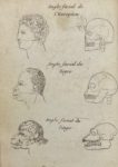 Paris, Delaunay, s.d. [v. 1813]. In-18, bradel cartonnage marbré, étui moderne (Reliure de l'époque).Édition originale, illustrée d'un titre gravé et un frontispice en noir et de 24 planches de physionomies coloriées au pinceau (Turc, Calmouck, Bédouin, Juif, Kamtschadale, Nègre de Guinée, Indien de la Floride, Homme de l'Île de Tchoka, de la Baie de Nootka, des Îles Sandwich, etc.). Ce curieux traité mêlant physiognomonie et ethnologie est demeuré anonyme.