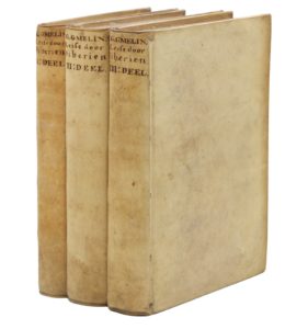 Harlem, Isaac et Johan Enschede, 1752-1754. 3 volumes in-8, vélin rigide, dos lisses, tranches mouchetées (Reliure de l'époque).Première traduction néerlandaise de cette volumineuse relation de voyage en Sibérie publiée en allemand à Göttingen en 1751-1752.