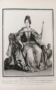 BONNART. RECUEIL DE HUIT ESTAMPES. Paris, Bonnart, 1690-1700. Huit gravures rassemblées dans un volume, petit in-folio (328 x 220 mm), demi-reliure moderne en maroquin rouge. Titre doré en long. Recueil de 8 gravures très rares : 2 suites et une gravure. - 4 estampes de la suite complète des «Nations de l'Europe» (France, Allemagne, Espagne, Italie). - 3 estampes mises en couleurs à l'époque des « Parties du Monde » (Orient, Occident, Septentrion). - 1 estampe de la suite des « Moments du Jour » (le Midy). Belle condition.