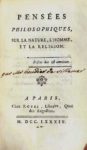 BOUDIER DE VELLERMET (P.J.). PENSEES PHILOSOPHIQUES, sur la nature, l'homme, et la religion. …