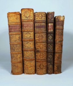BOUTARIC (François de). TRAITE DES DROITS SEIGNEURIAUX ET DES MATIERES FEODALES. Toulouse, Forest, 1767 - ISSALI (Jean). LES PLAIDOYEZ ET HARANGUES. Paris, Horthemels, 1688 - [VAUMORIERE]. HARANGUES SUR TOUTES SORTES DE SUJETS. Paris, Guignard, 1693. Portrait - HENRYS (Claude). PLAIDOYERS ARRESTS ET HARANGUES. Paris, Pepingue, 1658 - [SAINT-DIDIER (Hubert de). RECUEIL DES TITRES. Lyon, Chabanne, 1716. ENSEMBLE 5 VOLUMES, in-4° basane de l'époque. Reliures usées, nombreux défauts.