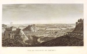 CHAMBRAY (Marquis de). HISTOIRE DE L'EXPEDITION DE RUSSIE. Paris, Pillet, 1825. 3 volumes et un atlas, bradel toile verte, dos ornés, tr. jaspées. Seconde édition illustrée d'un plan de Moscou et de 2 planches hors-texte. Avec 4 tableaux (sur 5) repliés et 9 cartes. L'auteur était capitaine dans l'Artillerie à cheval de la Garde et fit la campagne de Russie. Lors de la désastreuse retraite, laissé malade à Wilna, il tomba au pouvoir des Russes et fut envoyé en Ukraine. Très rare. Exemplaire portant les cachets de la bibliothèque des Rois de Hanovre.