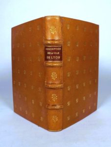 [CLAPASSON (A)]. DESCRIPTION DE LA VILLE DE LYON avec des recherches sur les hommes célèbres qu'elle a produits. Lyon, Delaroche, 1741. In-12, basane ornée d'un semis de lions héraldiques dorés, dos à nerfs orné (reliure XIX°). Edition originale.