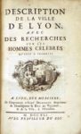 [CLAPASSON (A)]. DESCRIPTION DE LA VILLE DE LYON avec des recherches sur les hommes célèbres …