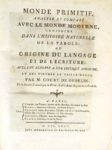 COURT DE GEBELIN. MONDE PRIMITIF OU ORIGINE DU LANGAGE ET DE L'ECRITURE. Paris, Chez l'auteur, …