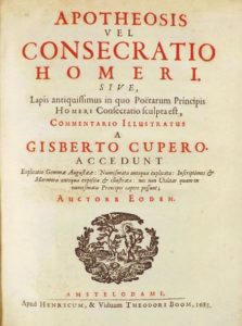 CUPER (Gisbert). APOTHEOSIS VEL CONSECRATIO HOMERI. Sive, Lapis antiquissimus in quo poëtarum …