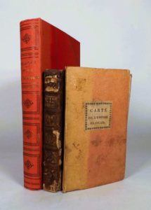 DELAPORTE (L.). VOYAGE AU CAMBODGE. Paris, Delagrave, 1880. In-4°, demi-percaline rouge à coins, dos lisse orné (reliure de l'époque). 175 gravures et 1 carte. Qq. rousseurs. De la bibliothèque Joseph et Gabriel Trévoux. On joint: - FER (N. de). Introduction à la géographie. Paris, Danet, 1717. In-8, basane de l'époque. 4 sur 6 cartes. Accident à la reliure. - POIRSON (J.B.). CARTE DE L'EMPIRE FRANÇAIS. 1811. Déchirures sans manque et réparations. ENSEMBLE 3 VOLUMES. Cachets.