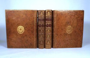 DESTOUCHES (Philippe Néricault dit). OEUVRES DRAMATIQUES. Paris, Imprimerie royale, 1757. 4 volumes in-4°, veau marbré, triple filet doré, armoiries au centre, dos orné d'un chiffre répété, dentelle intérieure, tranches mouchetées (reliure de l'époque). Édition collective posthume du théâtre de Néricault-Destouches (1680-1754), publiée par son fils avec des corrections et des inédits de l'auteur. Bon exemplaire aux armes et au chiffre royaux.