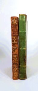 EXTRAITS DE MES LECTURES EN TOUS GENRES. Histoire, voyage, romans et autres.Manuscrit composé en 1807, très lisible, de 128 pages reliées en 1 volume in-8, velin vert (reliure de l'époque). Curieux recueil d'extraits d'auteurs en tous genres (Voltaire, Montalembert, Chénier, Shakespeare, Hamlet, etc), choisis par un malade à l'hôpital qui indique: «Au mois d'Aout 1807 à Vincennes ou j'étais pour la santé ayant des douleurs affreuses de poitrine et de dos qui m'obligèrent à prendre le lait (lit) matin et soir.». On joint un autre manuscrit anonyme fin XVIII°. - ELEMENTS DE RHETORIQUE. In-8 de 228 pages bien écrites avec une importante table à la fin. Ex-libris Gardien.