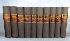 GODEFROY (Fr.).DICTIONNAIRE DE L'ANCIENNE LANGUE FRANCAISE et de tous ses dialectes du IX° au XV°. Paris, Libr. des sciences et des arts, 1937-38. 10 volumes in-4°, percaline grise (reliure de l'éditeur). Imposante somme de plus de 55.000 entrées. Chaque mot est accompagné de sa classe grammaticale, de sa traduction ainsi que des divers sens dans les textes anciens. C'est un instrument indispensable pour bien comprendre les textes et la civilisation du Moyen Âge. Dos passés sinon bon exemplaire. Cachets.