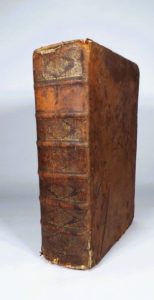 JOSEPH (Flavius). HISTOIRE DE FL. JOSEPHE, sacrificateur hebrieu, mise en françois, reveuë sur le Grec (…) par D. Gilb. GENEBRARD. Paris, Carroy, 1616. 2 tomes reliés en 1 fort volume in-folio veau brun, dos à nerfs orné. [28]-803-1bl-[40] pp. et [12]-528-[8] pages. Plusieurs bois gravés dans le texte. Exemplaire de travail.
