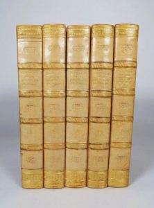 LANZI (Abbé). HISTOIRE DE LA PEINTURE EN ITALIE, depuis la Renaissance des Beaux-Arts, jusques vers la fin du XVIIIe siècle. Paris, Seguin et Dufart, 1824. 5 volumes in-8, demi veau cannelle, dos à nerfs joliment orné (reliure de l'époque). Très bel exemplaire admirablement conservé dans des reliures de qualité.