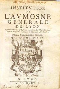 [LYON]. INSTITUTION DE L'AUMOSNE DE LYON. Ensemble l'oeconomie et règlemens qui s'observent dans …