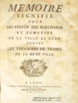 [LYON]. MEMOIRE SIGNIFIE POUR LES PREVOT DES MARCHANDS ET ECHEVINS CONTRE LES TRESORIERS DE …