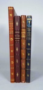 [LYON]. EPHEMERIDES Des loges maçonniques de Lyon. Lyon, Veuve Rougier, 1875. Nombreuses illustrations - NIEPCE (L.). LES TITRES de la noblesse ancienne et moderne du lyonnais. Lyon, Georg, s.d. - STEYERT (A.). CHANGEMENTS de noms des rues de la ville de Lyon. Lyon, chez l'auteur, 1884. Envoi - STEYERT (A.). L'ANCIEN quartier des capucins. Lyon, Pitrat, 1881. Envoi. ENSEMBLE 4 VOLUMES reliés. Défauts aux reliures.