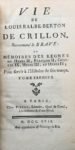 [LUSSAN (Mlle de)]. VIE DE LOUIS BALBE-BERTON DE CRILLON, Surnommé le Brave : et Mémoires des règnes de Henri II, François II, Charles IX, Henri II, et Henri IV. Paris, Pissot, 1757. 2 tomes in-12 de [6]-345-3bl.-[4]-307-[5] pages, veau blond, armes dorées sur les plats, dos à nerfs orné, tranches rouges (reliure de l'époque). Edition originale. Mademoiselle de Lussan serait la fille naturelle du Prince Eugène de Savoie. Portrait gravé. Un coin émoussé, manque à une coiffe, un mors fendillé. (Barbier IV, 971). Armes non identifiées.